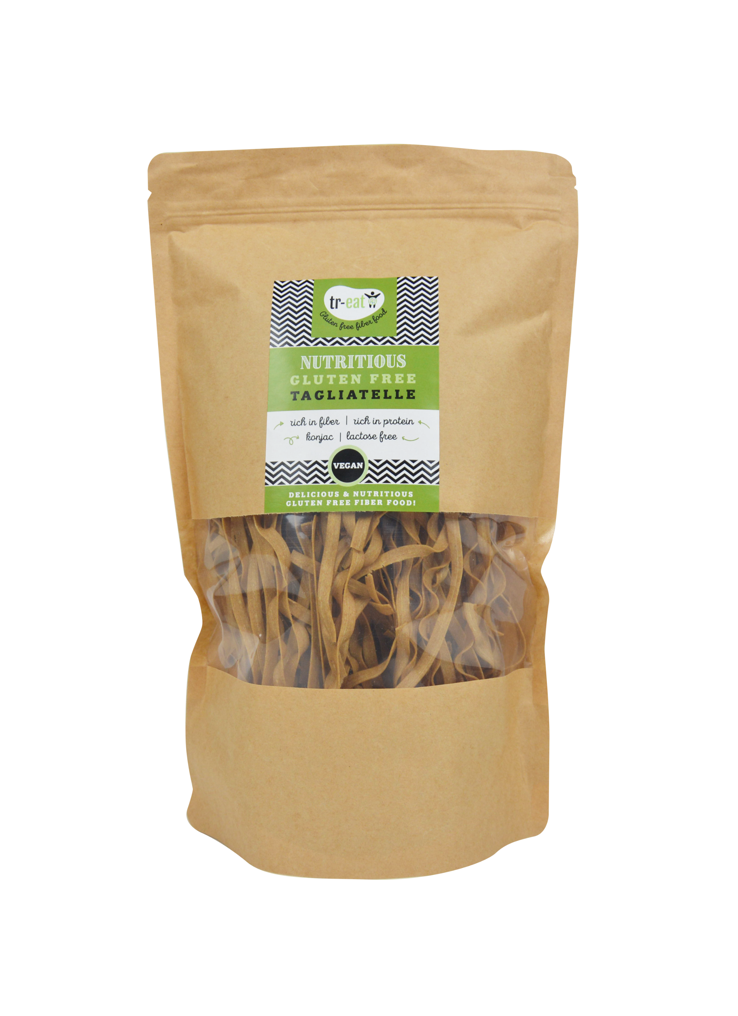 Deze tagliatelle bestaat enkel uit prebiotische vezels en is zonder ei samengesteld. De gunstige vezels komen uit lijnzaad, tapioca en konjac (knollen).
