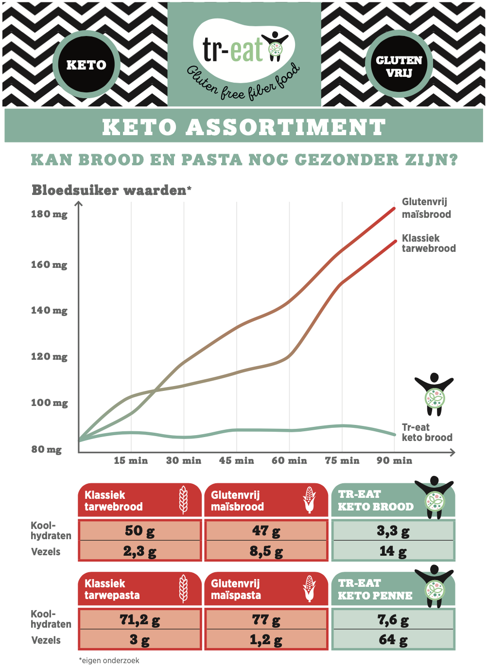 TR-EAT is een voedingslijn die past binnen een gezonde glutenvrije leefstijl, die helpt om je bloedsuikerspiegel stabiel te houden en goed is voor de darmen.